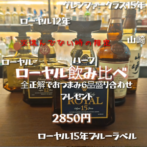 ウイスキーの銘柄を伏せた状態で提供し、銘柄を推測🔍し全て正解の場合、おつまみ6品盛り合わせをプレゼントする「ブラインドテイスティング」🎲も実施しています🎉。
