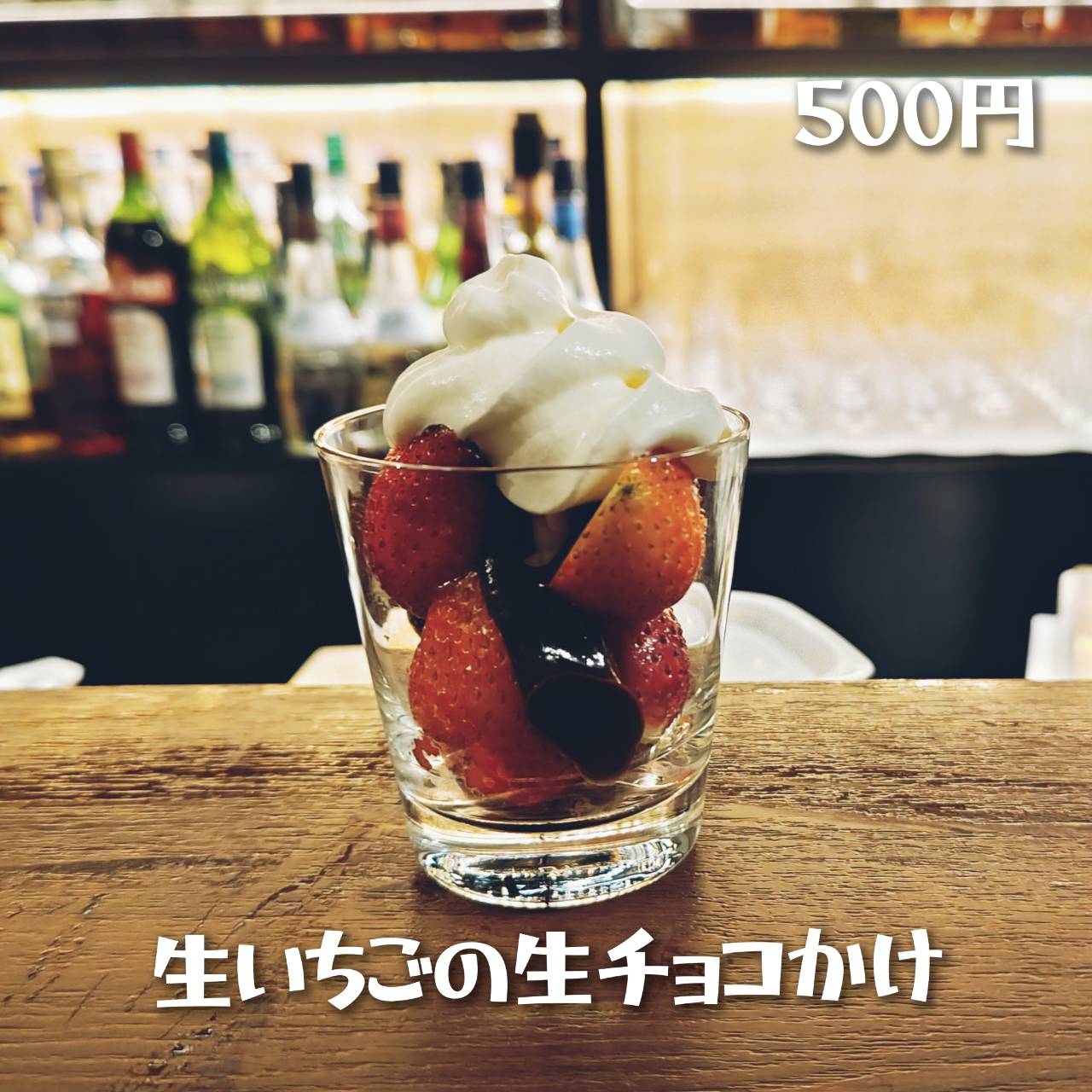 新鮮な生イチゴに、こだわりの手作り生チョコをたっぷりとかけました。素材の良さを引き立てるため、あえてシンプルに。生チョコのなめらかな口どけと、イチゴの甘酸っぱさが絶妙に絡み合い、ひとくちごとに幸せが広がります。