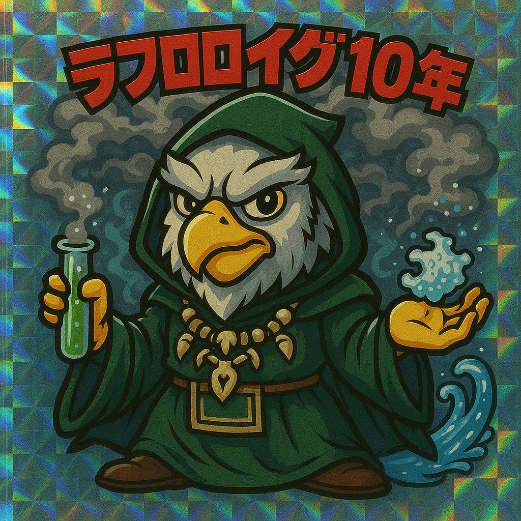 忘れがちな「テクスチャー」を、ビジュアルで記憶に刻む。 今回の主役は ラフロイグ10年アイラの濃厚スモークを纏った海ワシの祈祷師が出現!右手の試験管から立ちのぼる薬品香=ヨード臭左手の海水スプラッシュが示す潮っ気とミネラル感深緑ローブはボト... -